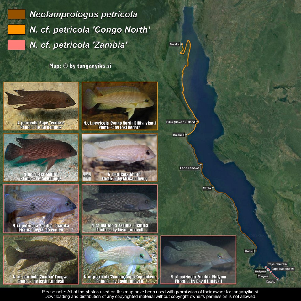 Neolamprologus petricola, N. cf. petricola 'Congo North' & N. cf. petricola 'Zambia'