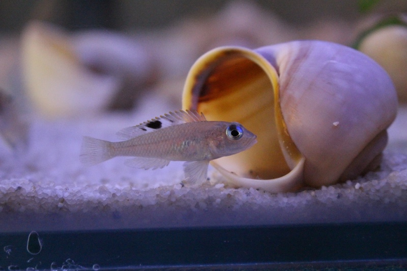 Drst se zgodi znotraj luknje, ki pripada samici. Zanimimo je, da se jajčeca te vrste ne zalepijo na dno, kot pri ostalih vrstah (tudi ne na steno polžje hišice v akvariju). Ko so jajčeca enkrat odložena so ponavadi v kratkem prenešena v luknjo, ki pripada samcu, ki je ponavadi večja in širša. Razvoj od jajčec do prosto plavajočih mladic ponavadi traja le 7 dni, torej precej hitro, sa je za lamprologine, ki se razmnožujejo v jamah, ponavadi ta čas okoli 10 dni. Število mladic je ponavadi nekje do 15.