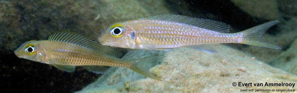 Rastlinojed. Prehranjuje se iz aufwuchsa, ki prekriva kamne. Njena usta so edinstvena med Tanganjiškimi ostrižniki in so zelo podobna tistim iz rodu Labeotropheus iz Malawijskega jezera. Iz aufwuchsa torej trga alge. Ko je na voljo plankton pa se v velikih skupinah prehranjuje tudi z njim v odprtih vodah.