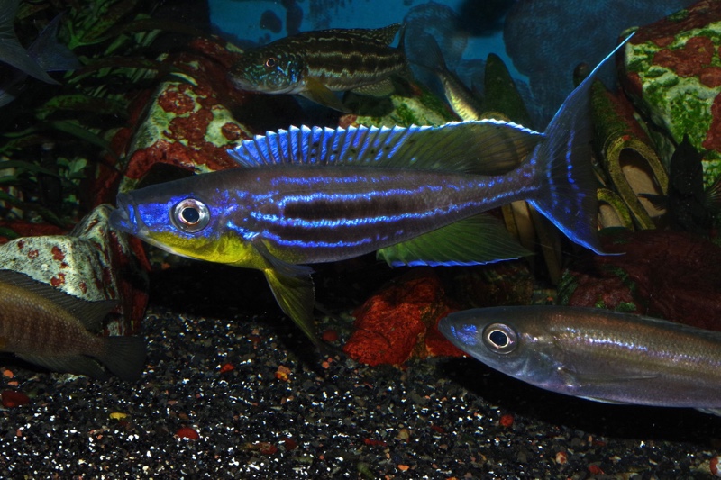Spada med mirnejše Tanganjiške ostrižnike, zato ga ne naselimo skupaj z agresivnejšimi vrstami. Zelo agresivni med samo so edino samci te vrste, zato nikoli ne naselimo v akvarij več kot enega samca.