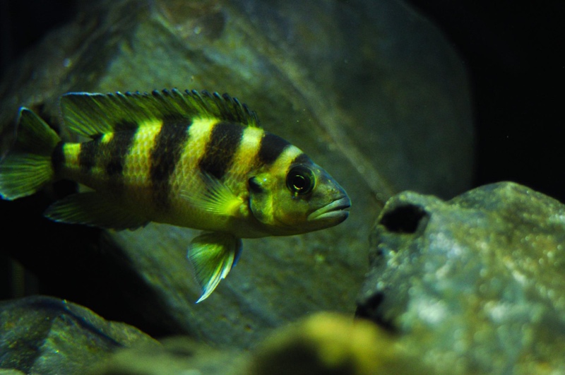 Poznamo nekaj geografskih variant te vrste. In sicer na jugu med lokacijama Moliro v Congu in lokacijo Kala v Tanzaniji najdemo modro obarvane primerke te vrste. Na zahodu severno od reke Livua ima ta vrsta rumeno obarvani zgornji del telesa in glavo. Na vzhodu severno od Fulwe Rocks pa so v celoti rumeni. Vse variante imajo seveda šest črnih vertikalnih prog po telesu.